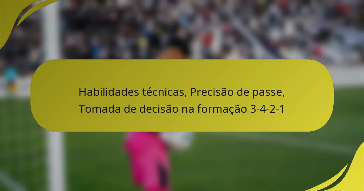 A formação 3-4-2-1 é uma configuração tática dinâmica no futebol que combina solidez defensiva com potencial ofensivo. O sucesso nesta formação depende de jogadores que possuam fortes habilidades técnicas, particularmente em precisão de passe e tomada de decisão, que são essenciais para manter a posse de bola e criar oportunidades de golo. Ao dominar estas habilidades, os jogadores podem aumentar a sua eficácia e contribuir para a estratégia geral da equipa.